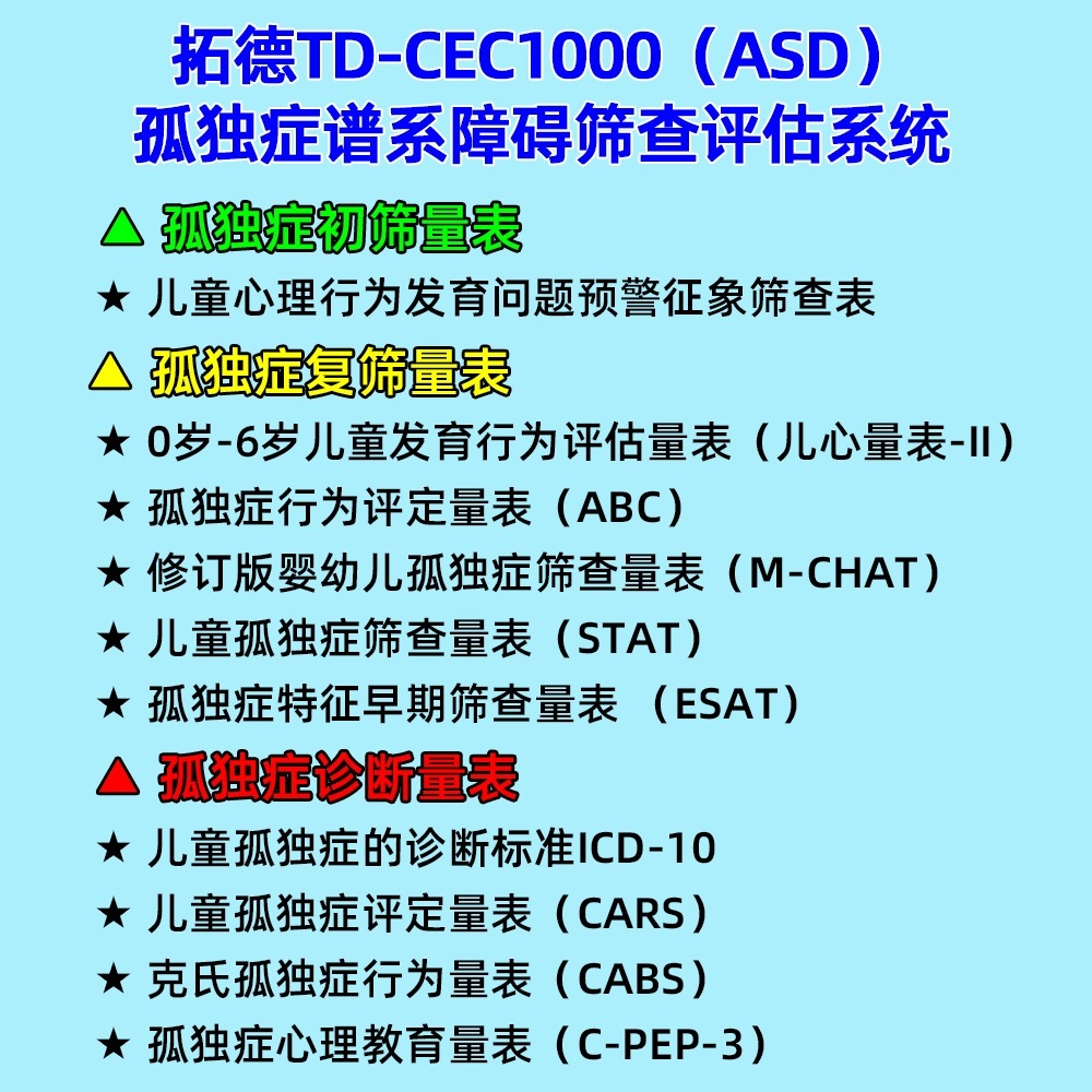 孤獨(dú)癥譜系障礙篩查評估量表,心理教育量表CPEP3,ASD自閉癥篩查量表