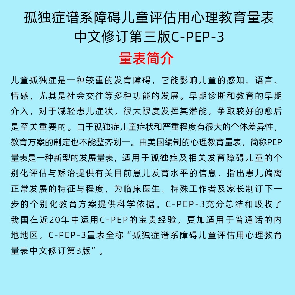 (孤獨癥譜系障礙兒童評估用心理教育量表中文修訂第三版C-PEP-3)
